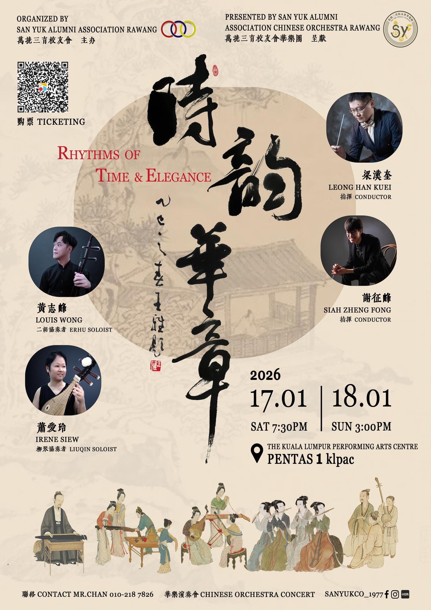 致欢迎词作为万挠三育校友会的主席,我诚挚欢迎您加入我们充满活力的社团。在这里,我们团结一心,共同传承诚信、协作和终身学习的核心价值观。我们的理事会由来自不同领域的校友组成,他们共同致力于建立有意义的联系,庆祝我们共同的成长历程,并培养下一代领导者,以确保母校的精神继续激励和鼓舞每一位踏入这里的人。让我们一起庆祝,铭记过去,展望未来,共同创造新的回忆。~ 校友会主席锺少安万挠三育校友会《三育心•校友情》 情系56周年 『再聚首•忆当年』暨 万挠三育华文学校 2025年 教师节—联欢晚宴— 查看 晚宴详情华乐演奏会 《時韻華章 Rhythms of Time & Elegance》万挠三育校友会华乐团 举办 《時韻華章》 华乐演奏会,尝试从不同角度呈现华乐色彩,汇集室内乐、器乐交响、流行曲目及协奏形式,充分展现华乐乐器全面性。🗓️ 17/01/2026 (星期六) 7.30PM🗓️ 18/01/2026 (星期日) 3.00PM📍Pentas 1, The Kuala Lumpur Performing Arts Centre (klpac)优惠及团购 请查看:Facebook 帖文 购票 链接 活动通告召开 2025年度 常年会员大会 暨 颁发会员子女奖助学金仪式日期:2025年8月3日 • 时间:早上10点 • 地点:校友会会所(B座)查看详情2025年度 会员子女 奖助学金正式接受申请 • 截止日期:2025年7月15日查看详情 活动直播 回放 林水檺教授《中国古典诗词欣赏》讲座会系列 — 第四堂课 Now Playing林水檺教授《中国古典诗词欣赏》讲座会系列 — 第四堂课 Now Playing林水檺教授《中国古典诗词欣赏》讲座会系列 — 第三堂课 Now Playing林水檺教授讲座会 《中文诗词欣赏》 第二堂课 (Part II) Now Playing林水檺教授讲座会 《中文诗词欣赏》 第二堂课 (Part I) 活动 通告 Jan 17 January 17, 2026 @ 7:30 pm - January 18, 2026 @ 10:30 pm 《時韻華章》华乐演奏会 KLPAC Organizer: 万挠三育校友会华乐团 Jan 25 2026(丙午)年 拿督斯里曾繁荣杯 揮春公开赛 View Calendar